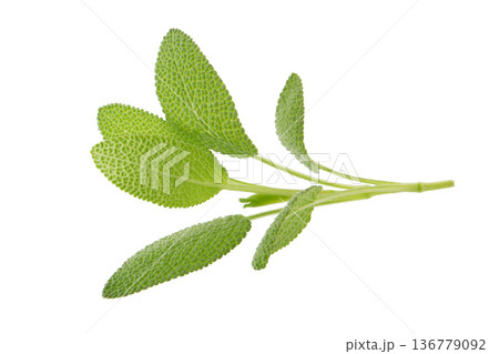 fresh sage herb in wooden bowl isolated on white background with full depth of field