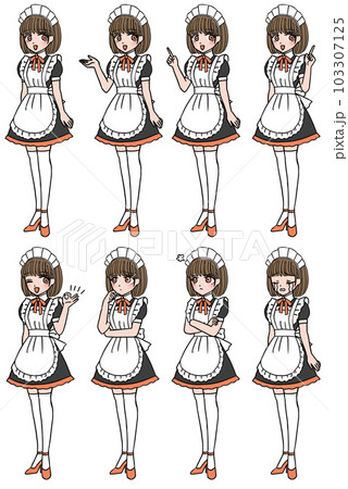 棕色頭髮的女僕,胸前繫著橙色的緞帶,有 8 個不同的表情。