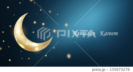 Vector background "Eid Mubarak and Ramadan Kareem" with a golden crescent moon. Beautiful illustration.