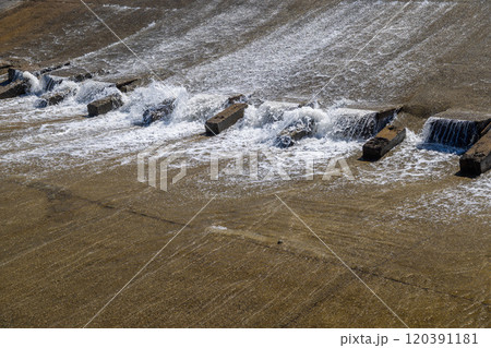 chute dentate blocks in concrete water spillway channel