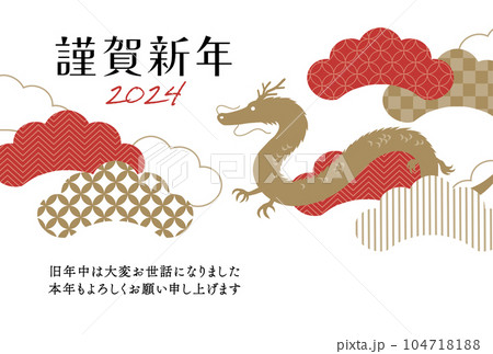 2024年新年賀卡昇龍插畫素材