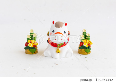 新年賀卡設計的馬雕像,手繪日式畫筆插圖