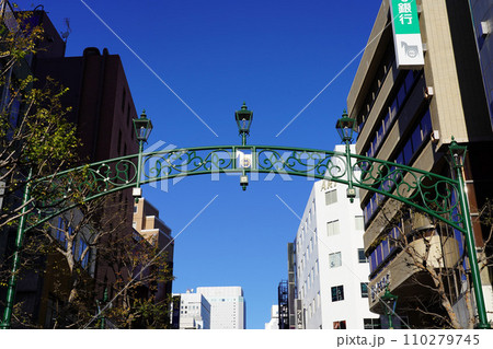 日本橫濱市街景 8號出口...從馬車道人行道看到的橫濱市營地鐵關內站(8號出口)