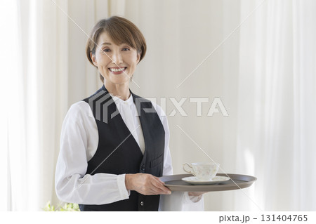 微笑的中年到老年女性咖啡館工作人員看著鏡頭