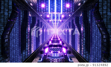 Glowing Neon Light Sci Fi Pattern Tunnel