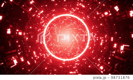 Glowing Red Circle Light Sci Fi Tunnel Background 3D Rendering