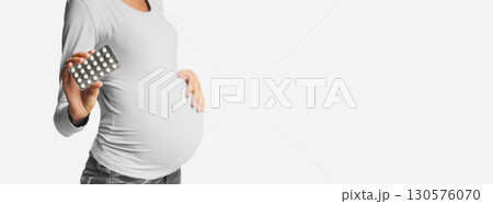 Cheerful Pregnant Girl Listening To Music In Headphones And Dancing In Studio On White Background. Pregnancy Lifestyle