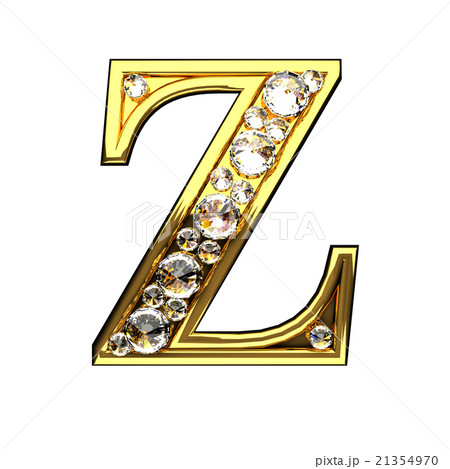 Golden shining metallic 3D with green glass symbol capital letter Z - uppercase isolated on white.