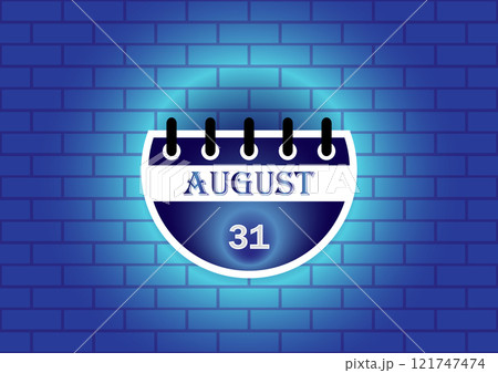 August 31st calendar page against a blue brick wall background. Perfect for scheduling, reminders, or event planning.