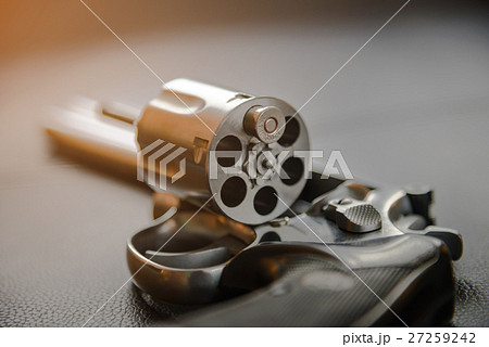 Revolver on wooden table