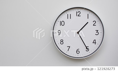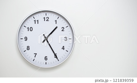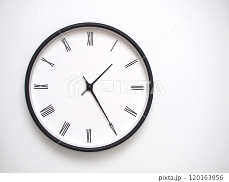 Classic Black-Edged Clock on White Background at 13.25/01.25 - Perfect for Time Management and Text Space