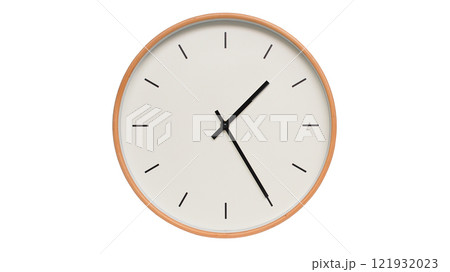 Isolated on white background Minimalist style wooden wall clock, showing time at 13.25/01.25 - Perfect for Time Management and Scheduling Concepts