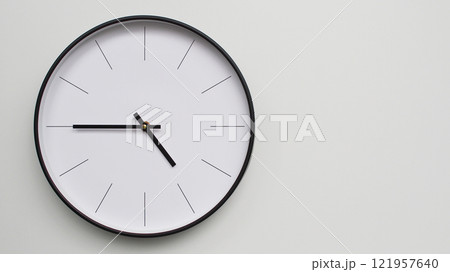 Minimalist Black and White Wall Clock on White background - Perfect for Time Management and Scheduling Concepts - 16.45/04.45
