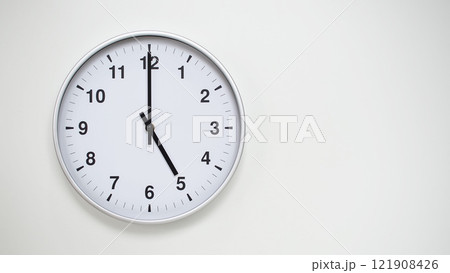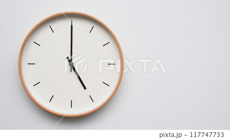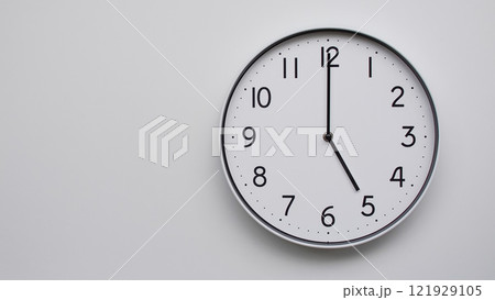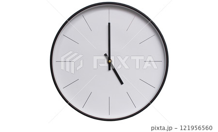 Minimalist Black and White Wall Clock on White background - Perfect for Time Management and Scheduling Concepts - 17.00/05.00