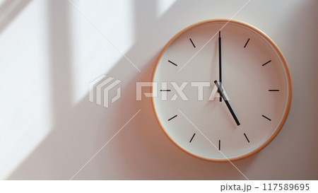Wall Clock Showing 17.00/05.00 O'Clock on White Wooden Surface - Perfect for Time Management and Scheduling Concepts