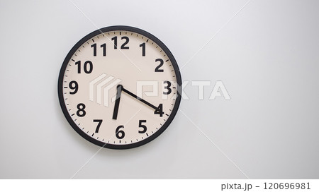 Minimalist Analog Wall Clock with White Face and Simple Black Hands Showing 18.20/06.20 - Ideal for Time Management and Modern Decor Concepts