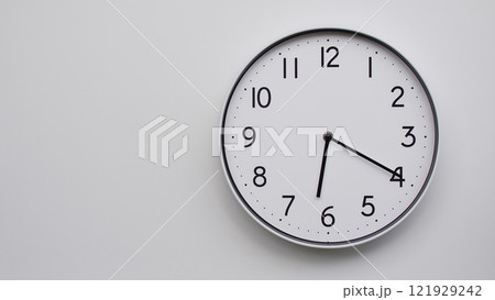 Minimalist White Clock with Silver Frame Striking 18.20/06.20 on White Background. Perfect for Time Management and Corporate Campaigns