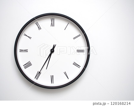 Classic Black-Edged Clock on White Background at 18.35/06.35 - Perfect for Time Management and Text Space