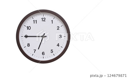 Classic Black-Edged Clock on White Background at 18.45/06.45 - Perfect for Time Management and Text Space
