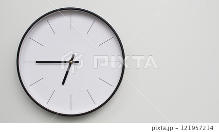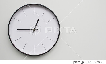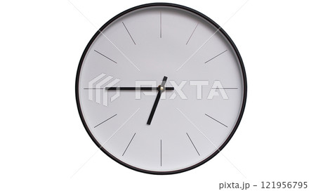 Minimalist Black and White Wall Clock on White background - Perfect for Time Management and Scheduling Concepts - 18.45/06.45
