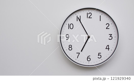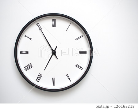 Classic Black-Edged Clock on White Background at 18.55/06.55 - Perfect for Time Management and Text Space