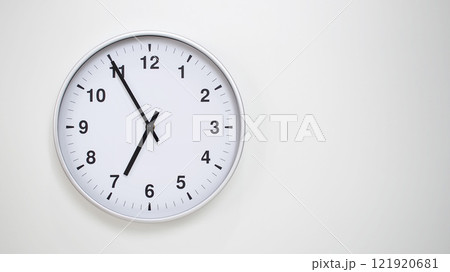 Minimalist White Clock with Silver Frame Striking 18.55/06.55 on White Background. Perfect for Time Management and Corporate Campaigns