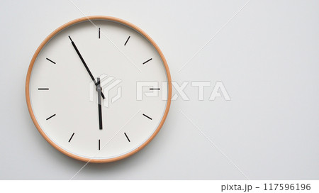 Minimalist Analog Wall Clock with White Face and Simple Black Hands Showing 18.55/06.55 - Ideal for Time Management and Modern Decor Concepts