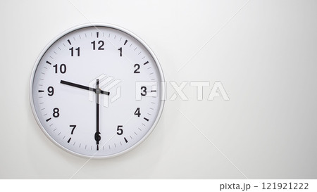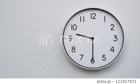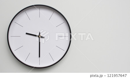 Minimalist Black and White Wall Clock on White background - Perfect for Time Management and Scheduling Concepts - 21.30/09.30