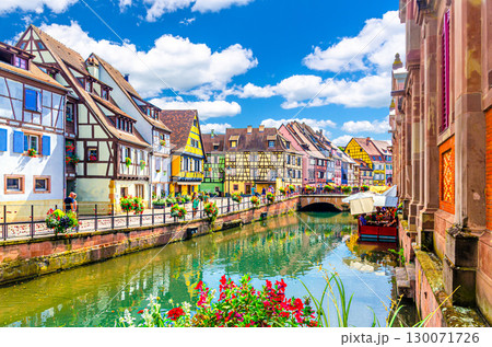 Little Venice la Petite Venise in old town Colmar city historic centre with old colorful houses medieval buildings on Quai de la Poissonnerie of river Lauch canal, Alsace Grand Est region, France