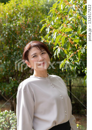 山梨縣山梨市乾山月見岩附近兩名女登山客眺望富士山的後景