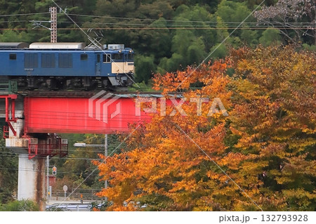 EF64-1046牽引的貨運列車在秋葉覆蓋的木曾路路上行駛(81re)_攝於2024年11月23日