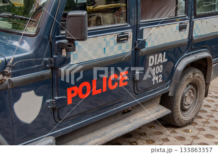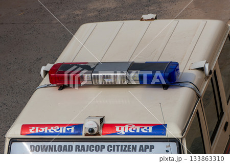 ndia, Police Car on a Street in Jaipur