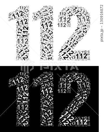 Typography illustration of 112 made from repeating numbers in black and white