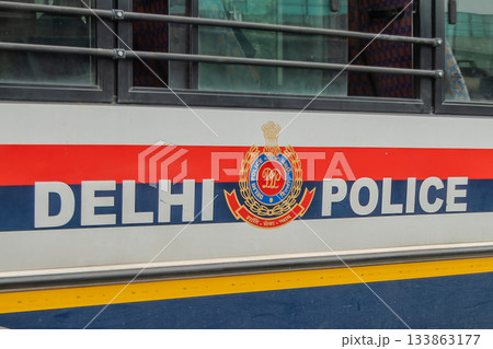 India, Police Car in a New Delhi Street