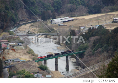 水軍線下附 7 號久慈川大橋俯視圖 DE10 施工列車
