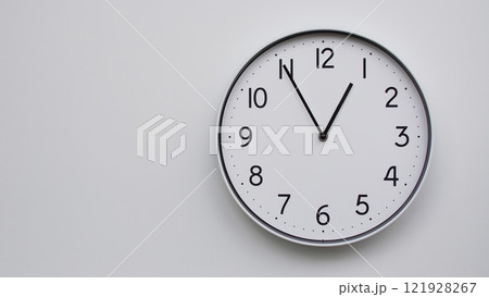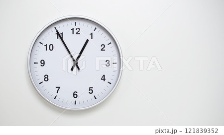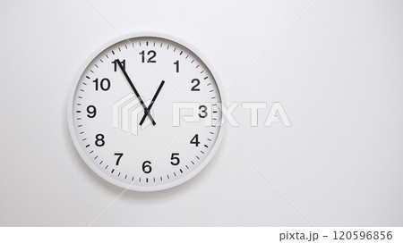 Clean White Clock at 12.55 or 00.55 on Minimalist White Background - Ideal for Time Concepts and Modern Design