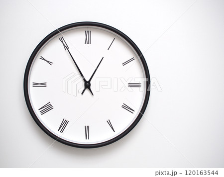 Classic Black-Edged Clock on White Background at 12.55/00.55 - Perfect for Time Management and Text Space