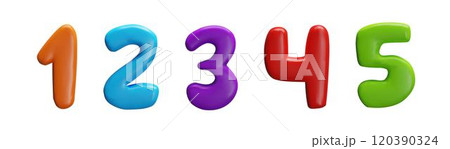 Glossy 3D multicolored 12345 digits, numbers from one to five vector set, volume numeric symbols arithmetic education