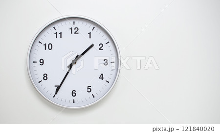 Minimalist White Clock with Silver Frame Striking 13.35/01.35 on White Background. Perfect for Time Management and Corporate Campaigns