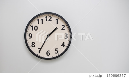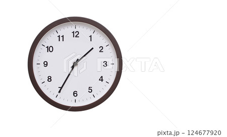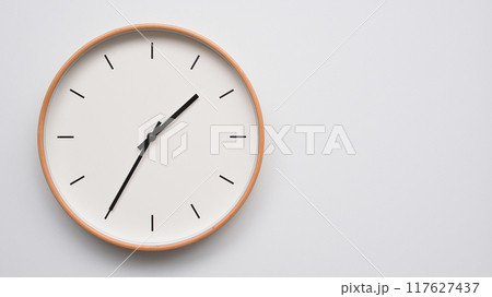 Isolated on white background Minimalist style wooden wall clock, showing time at 13.35/01.35 - Perfect for Time Management and Scheduling Concepts