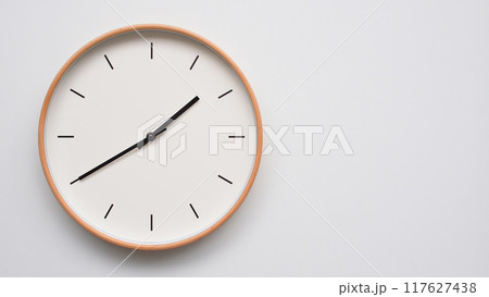 Isolated on white background Minimalist style wooden wall clock, showing time at 13.40/01.40 - Perfect for Time Management and Scheduling Concepts
