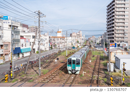 從花畑鐵路人行天橋看到的景色:德島縣德島市,側線上有開往阿南方向的2號本地列車