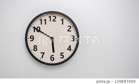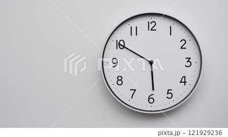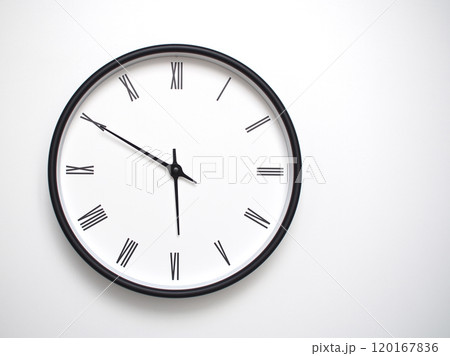 Classic Black-Edged Clock on White Background at 17.50/05.50 - Perfect for Time Management and Text Space