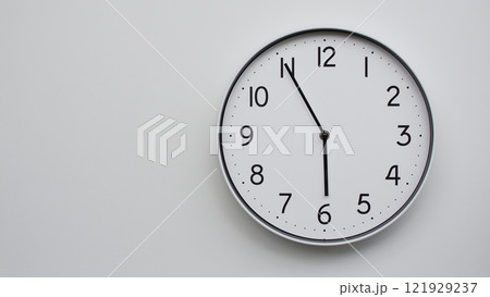Classic Black-Edged Clock on White Background at 17.55/05.55 - Perfect for Time Management and Text Space