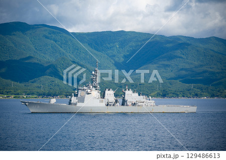 金剛號驅逐艦正在新潟縣佐渡島兩津灣進行演習。