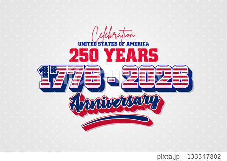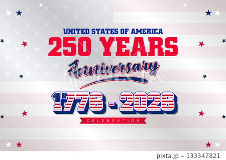 250 Years Anniversary 1776 2026 Ribbon Style Banner. Soft Metallic Gradient Patriotic Celebration Background