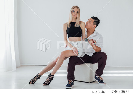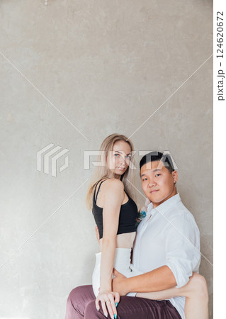 Man And Woman Sitting Together Side By Side Hugging And Smiling