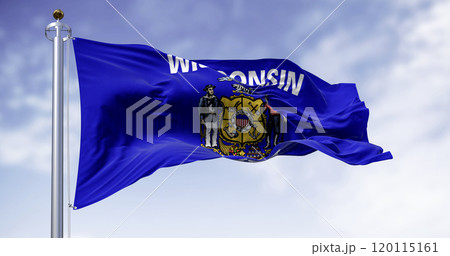 Wisconsin state flag waving in the wind