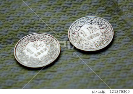 Old Swiss silver coins one franc 19th century