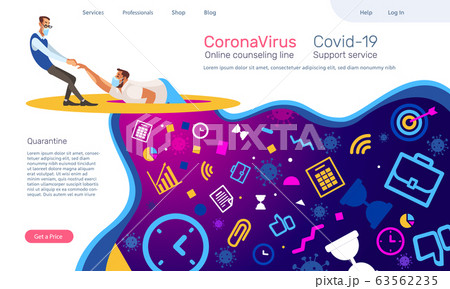 Coronavirus or Covid-19 quarantine. Banner Support service psychology. Online counseling line. Videoconferencing at home during coronavirus self quarantine. Stay at home concept. Cartoon vector